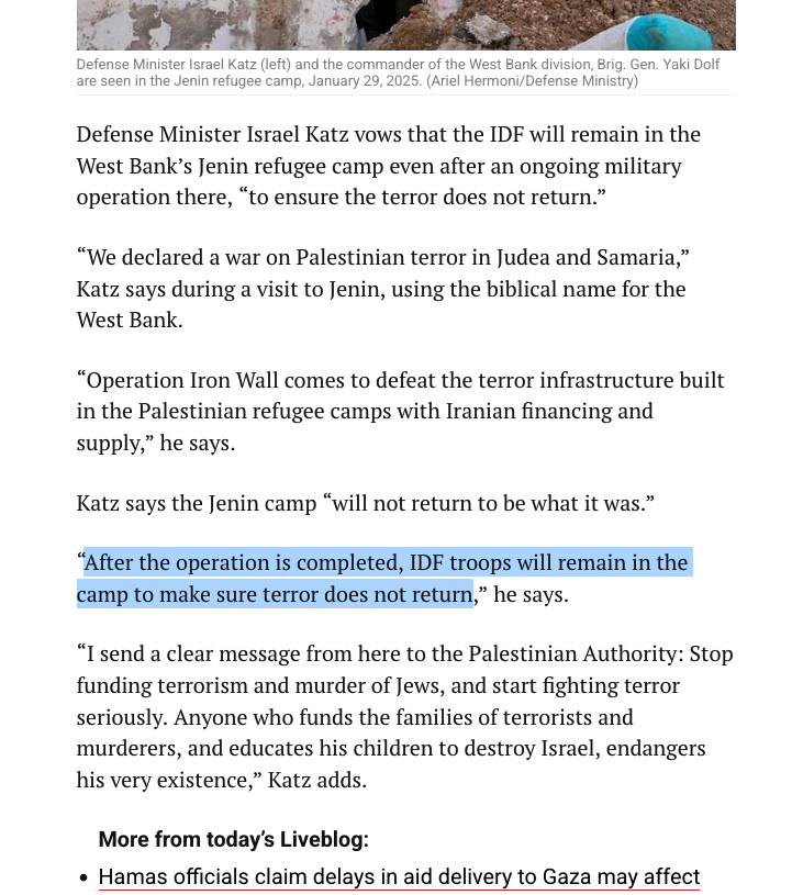 • Context: Despite no military conflict, Israel illegally occupied land in Syria during the chaos when Assad was overthrown and Israel refuses to leave
