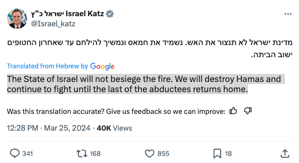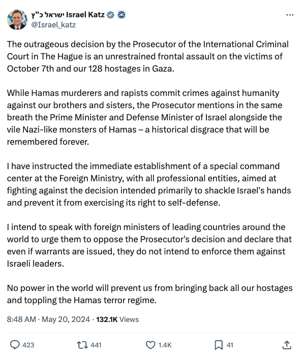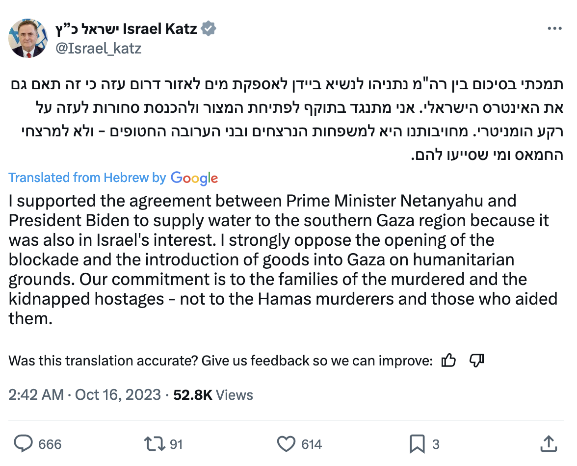 • Source: Israel Katz's Twitter post