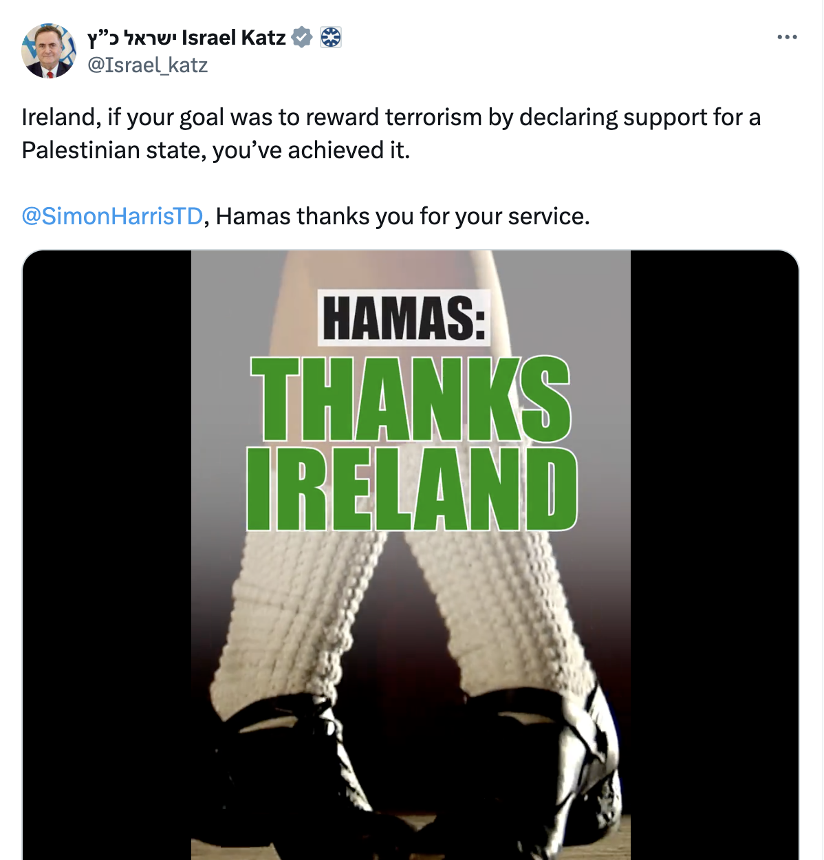 13. Ireland, if your goal was to reward terrorism by declaring support for a Palestinian state, you’ve achieved it. @SimonHarrisTD, Hamas thanks you for your service.