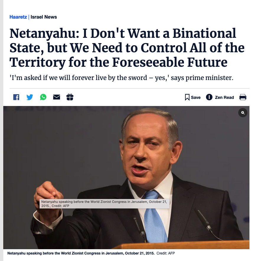 66. As of right now, the occupation is permanent. And as of right now I would like to continue to apply Israeli sovereignty over all the areas that I can ... It is our right to continue to apply sovereignty on all land that legally belongs to Israel, and to settle this land in order to have the safest borders and to stop giving in to all kinds of nations that never existed and suddenly popped up.