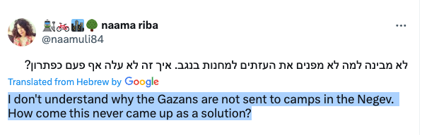 I don't understand why the Gazans are not sent to camps in the Negev. How come this never came up as a solution?