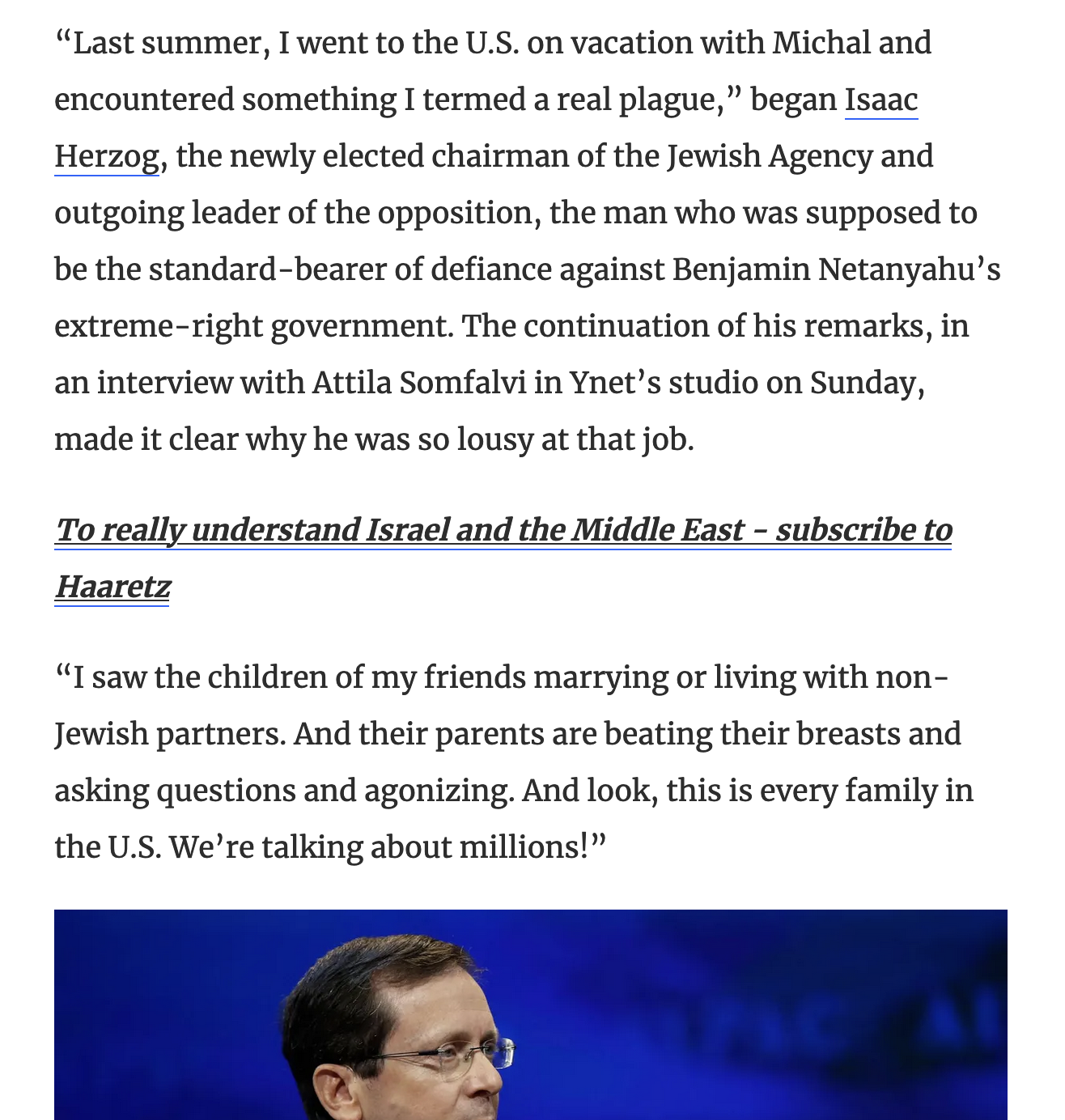 I went to the U.S. [...] and encountered something I termed a real plague. I saw the children of my friends marrying or living with non-Jewish partners.