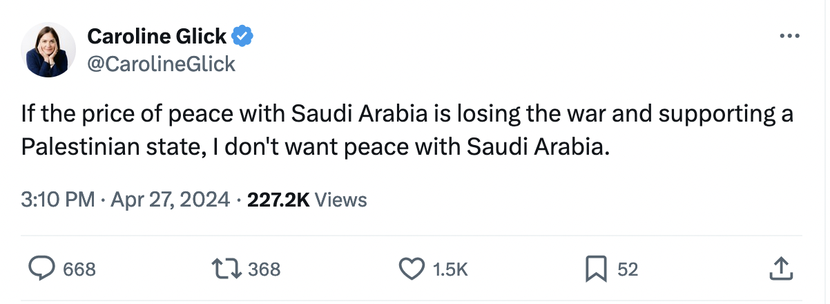 10. If the price of peace with Saudi Arabia is losing the war and supporting a Palestinian state, I don't want peace with Saudi Arabia.