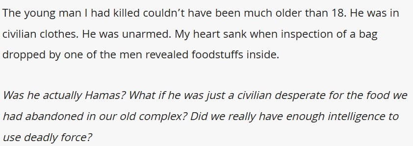 8. The young man I had killed couldn’t have been much older than 18. He was in civilian clothes. He was unarmed. My heart sank when inspection of a bag dropped by one of the men revealed foodstuffs inside.