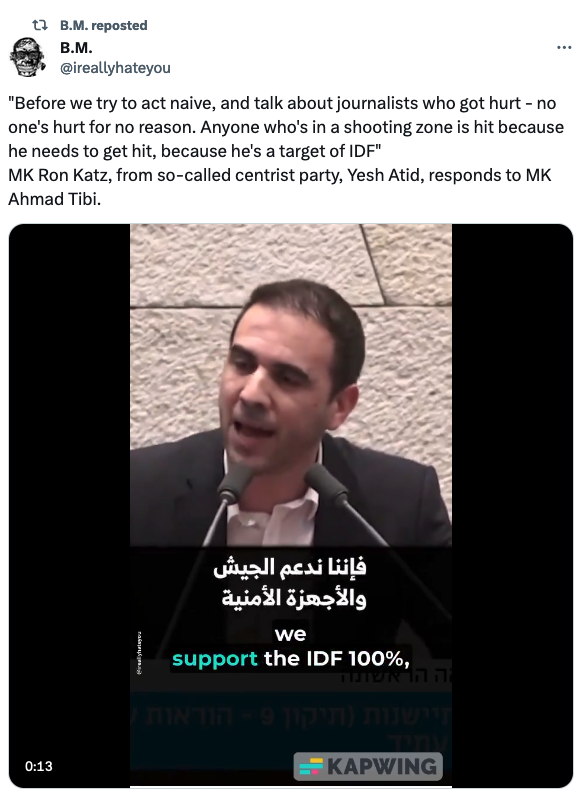 73. Before we try to act naive, and talk about journalists who got hurt - no one's hurt for no reason. Anyone who's in a shooting zone is hit because he needs to get hit, because he's a target of IDF.